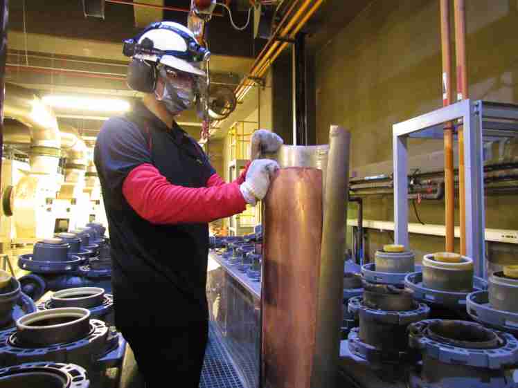 牛牛游戏将废弃物转化成有效的工业或民生原物料,,图为废铜液淬炼后再制成纯度极高的铜管